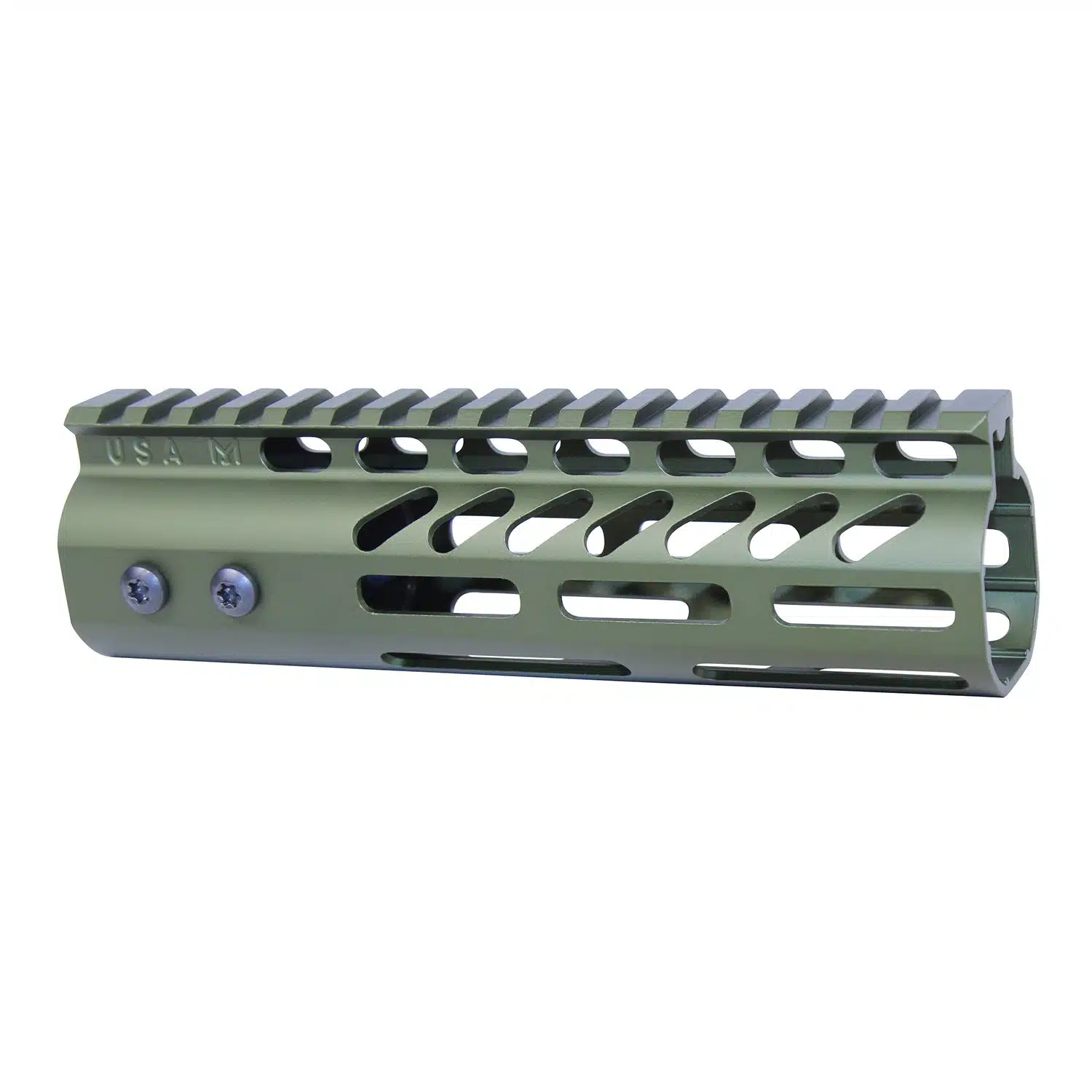 Enhance your rifle with this US Made diamond series M-LOK free-float handguard, designed for optimal performance and durability. Crafted from 6061-T6 Aluminum with a sleek Anodized Green Finish, this 7″ Carbine Length handguard offers a Heavy Duty construction that withstands rigorous use. The tight fit-up against the receiver creates a monolithic top rail, providing a seamless platform for optics and accessories. The rail system slides over the proprietary barrel nut and is secured with 6 screws, ensuring a stable and secure attachment. Its internal diameter of 1.34″ allows ample space for installation on a variety of barrels. Perfect for tactical, hunting, or range use, this handguard combines functionality with a clean and professional look. Upgrade your firearm with confidence—combining high-quality materials, precise engineering, and a distinctive green finish that stands out. Whether you’re building a new rifle or upgrading an existing platform, this handguard offers exceptional performance and style.