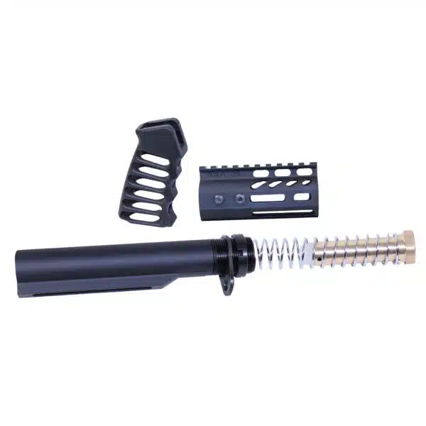 The Miltubeset is a top-tier assembly designed for tactical enthusiasts looking for durability and superior performance. Constructed from T6 Aluminum with an Anodized Black Finish, the kit includes everything you need for your AR-15 Pistol setup. It features a six-position buffer tube that is compatible with SBA Tactical Braces, providing versatility and enhancing your shooting experience. Weighing only 9.6 oz for the entire kit, it ensures lightweight functionality without compromising on strength.