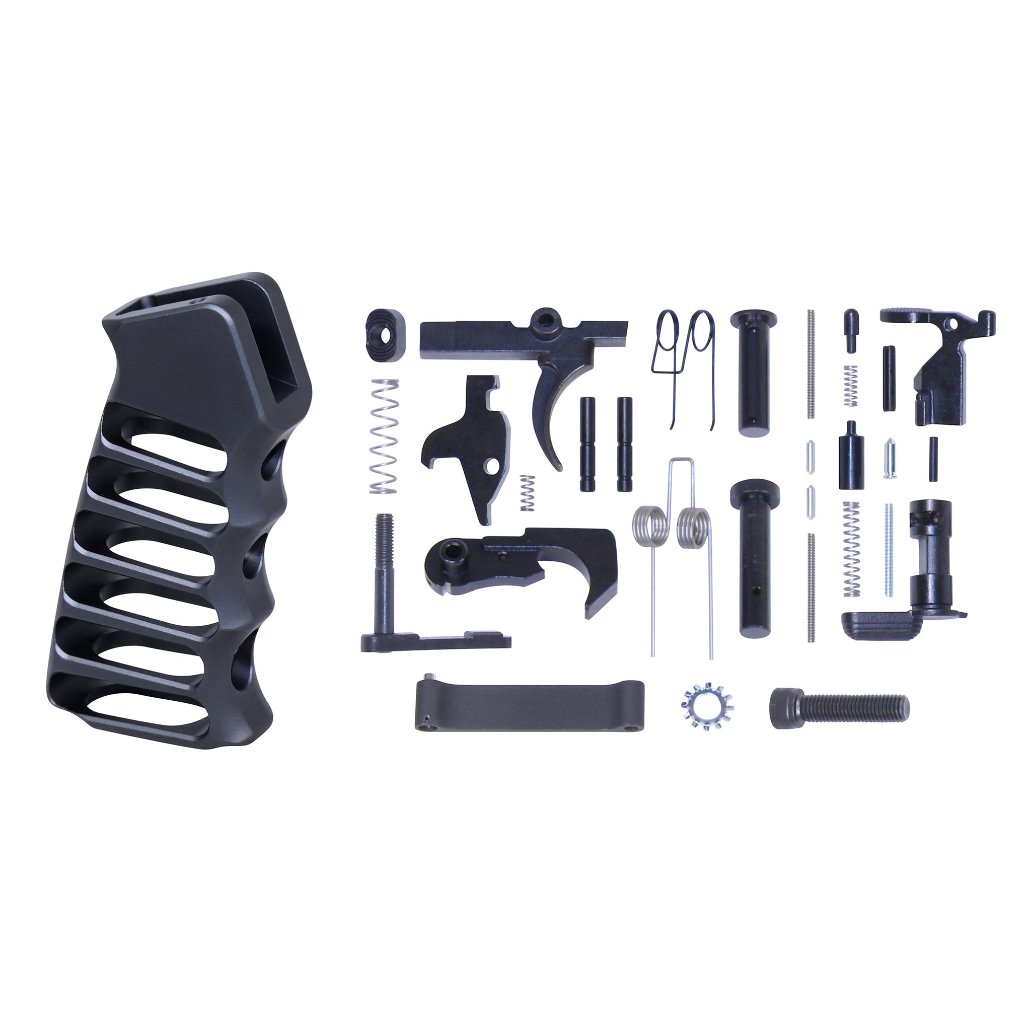 - AR-15 Complete Lower Parts Kit with Ultralight Skeletonized Aluminum Pistol Grip