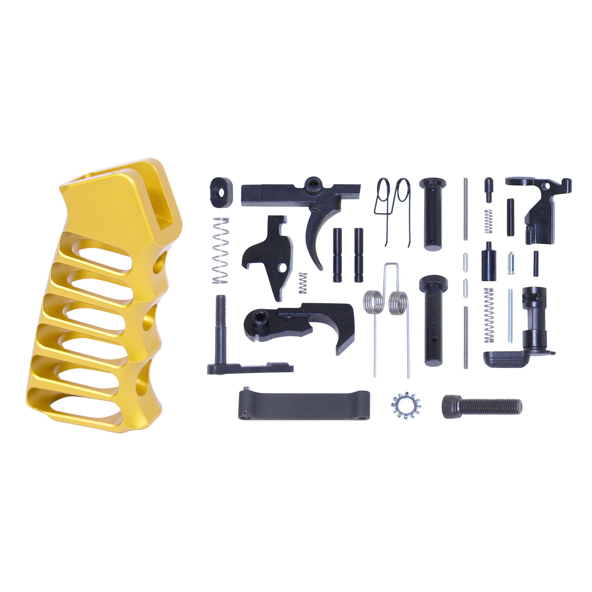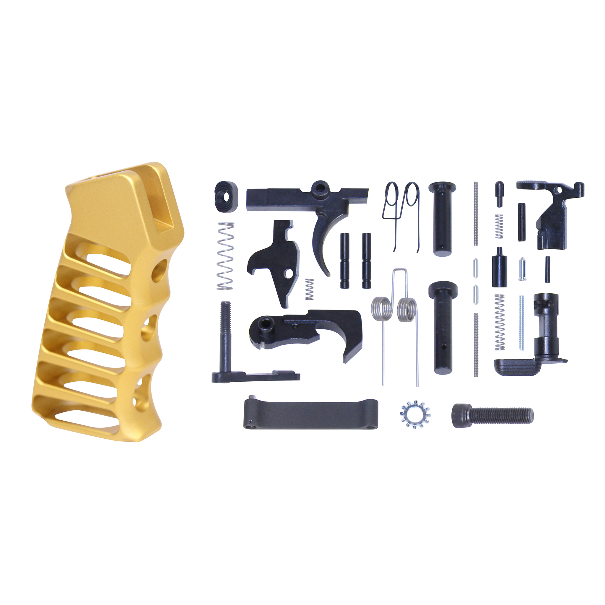 - AR-15 Complete Lower Parts Kit with Ultralight Skeletonized Aluminum Pistol Grip