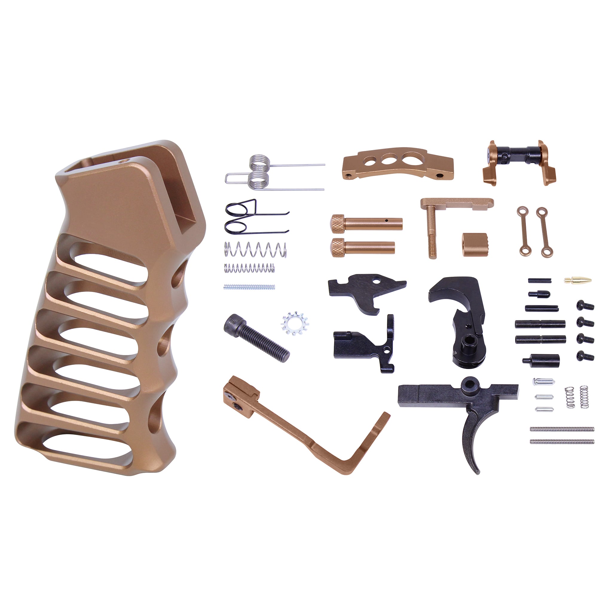 - AR-15 Enhanced Lower Parts Kit With Upgrades & Skeletonized Aluminum Pistol Grip