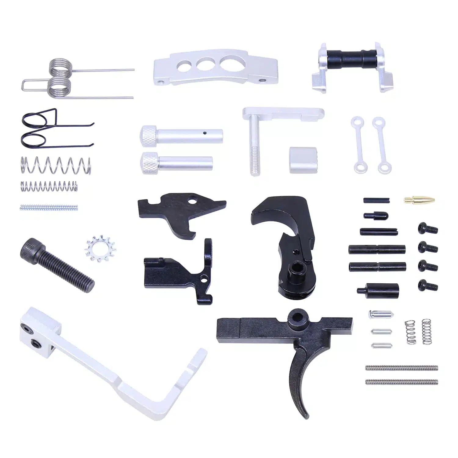 - Includes Everything In A Standard Lower Parts Kit With Upgraded Anodized Parts