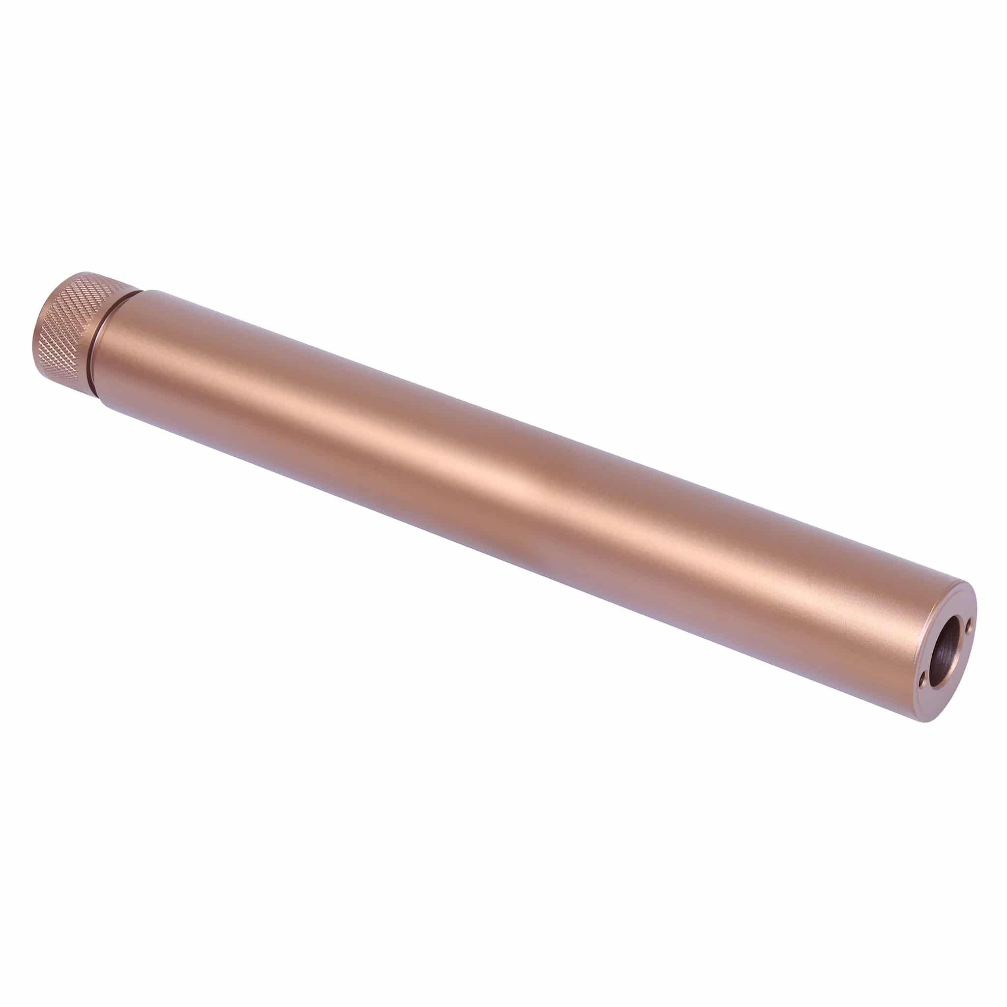 This barrel extension is crafted from high-quality T6 Aluminum, ensuring durability while minimizing weight. Designed specifically for 300 AAC/ .308 Cal firearms, it offers a seamless integration with a 5/8 x 24 thread. The anodized bronze finish not only enhances the aesthetic appeal but also adds to the corrosion resistance of the product. Measuring 8.5 inches in length, this extension effectively extends your barrel length, providing improved shooting performance. With an overall 9-inch total length and a weight of just 12.4 oz, it strikes the perfect balance between functionality and portability. Proudly made in the USA, this extension is designed to fit your needs without compromising quality or performance. Whether you’re a seasoned shooter or a hobbyist, this barrel extension functions as an essential upgrade to your firearm setup, enhancing accuracy and extending the reach of your shots.