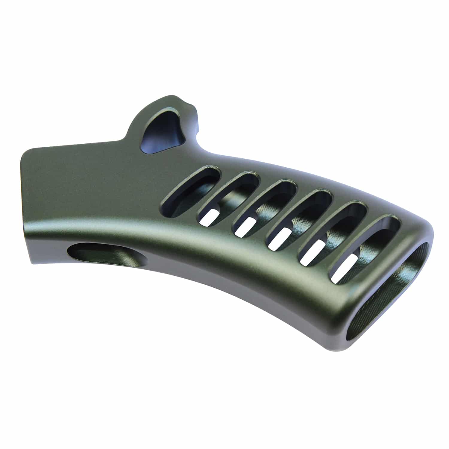 Upgrade your firearm with this durable and lightweight accessory crafted from 6061 Billet Aluminum. Designed to conform to DOJ criteria and ensuring compliance with local laws, this component features an ergonomic design and a skeletonized cut-out for reduced weight. The ultralight series construction provides enhanced handling without sacrificing strength or durability. The classic anodized green finish adds a striking look while standing up to daily use. Please note, this product includes a grip screw and washer for easy installation. Designed with compatibility in mind, it is perfect for those seeking a high-performance upgrade that combines style and function. We recommend consulting your local laws and regulations to ensure full compliance before installation.